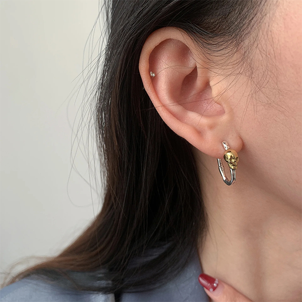 Par de Brincos Caveira Vintage em Prata 925