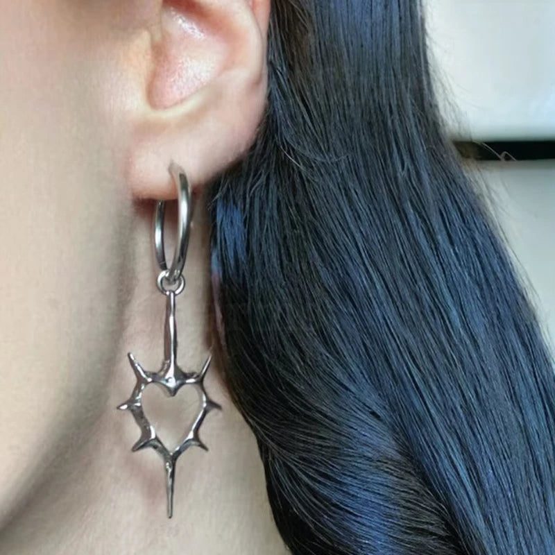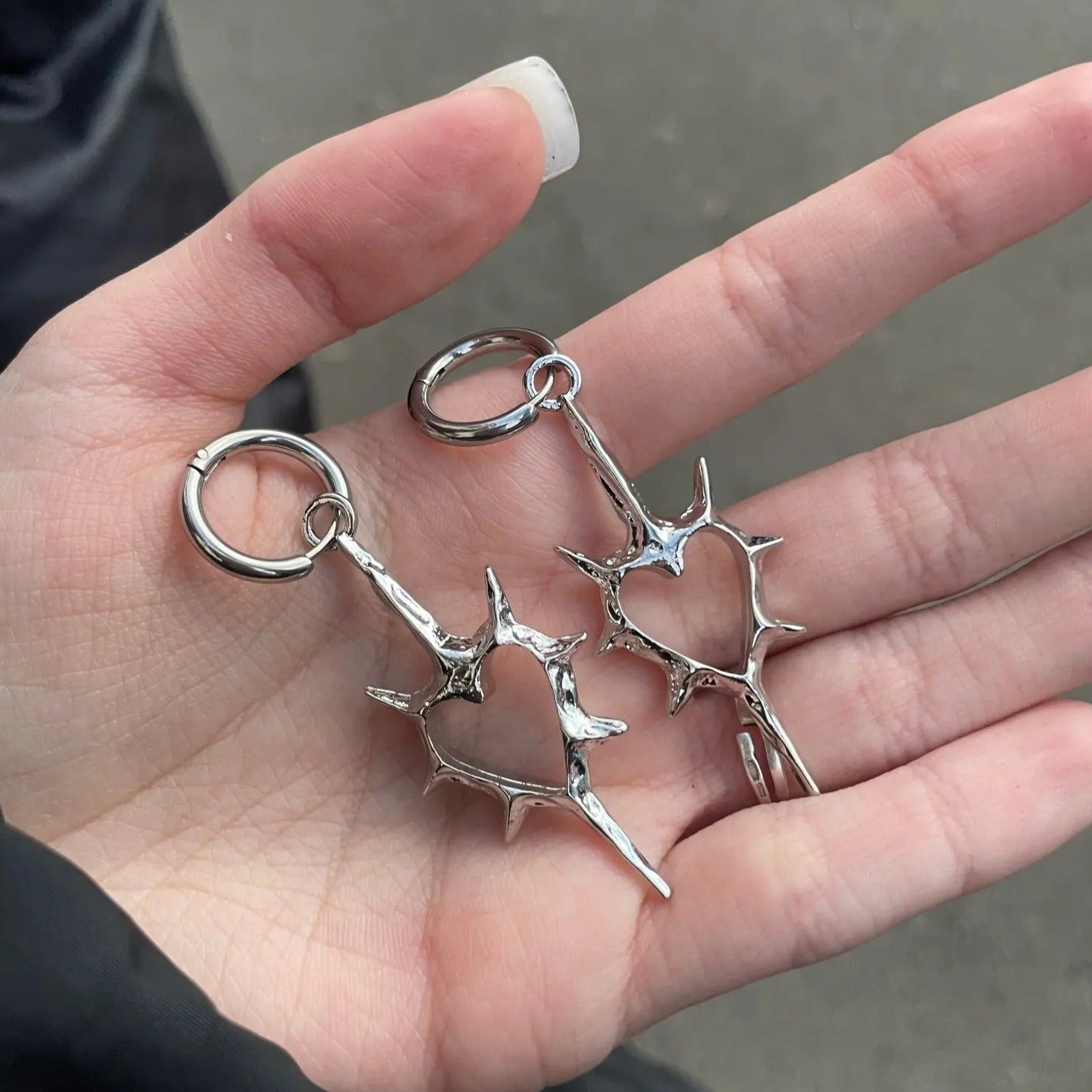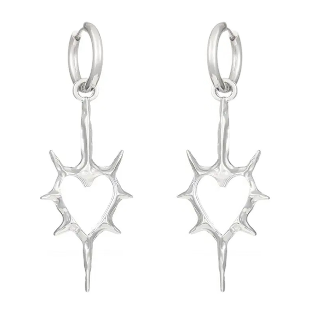 Destaque-se com o Par de Brincos Punk Heart. Estes brincos apresentam um design ousado e moderno, com corações estilizados que transmitem uma vibe rebelde e cheia de atitude.