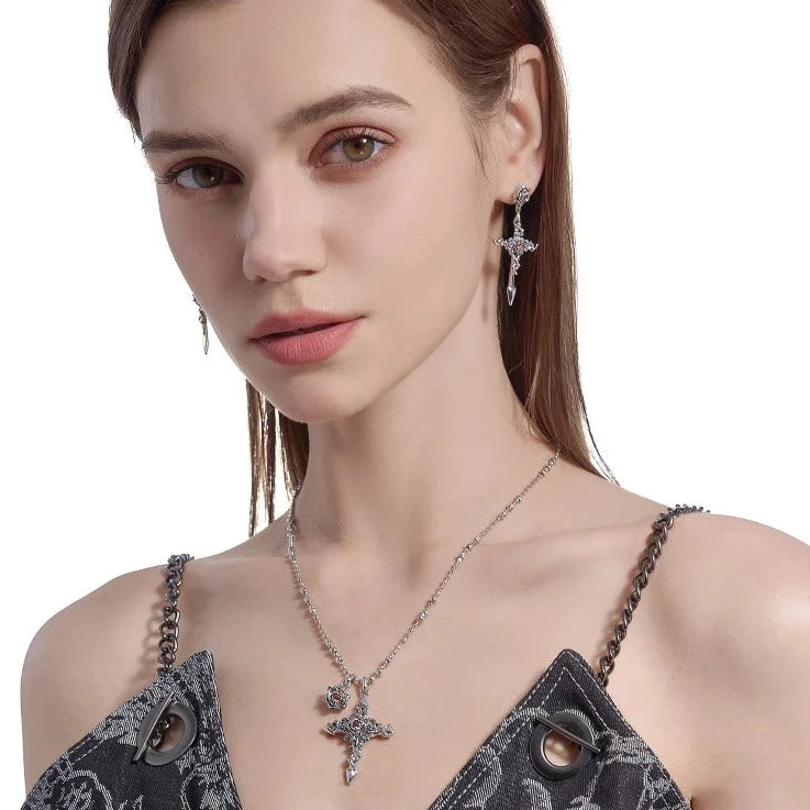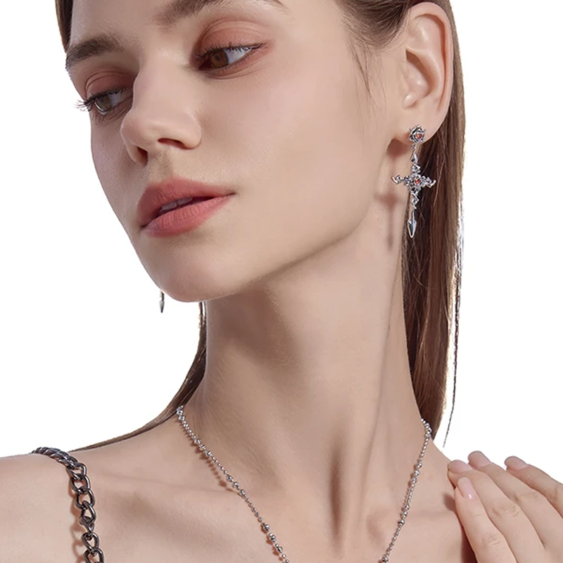 O Par de Brincos Rose Cross combina a sofisticação das rosas com a simbologia das cruzes, criando um acessório único e elegante. Ideal para quem busca um toque de romantismo e misticismo em seu visual, esses brincos são perfeitos para ocasiões especiais ou para adicionar um charme extra ao dia a dia.