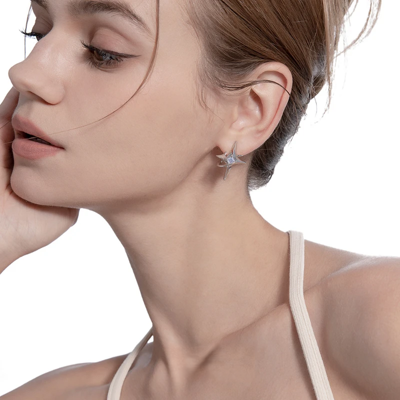 Ilumine seu visual com o Par de Brincos Silver Star. Estes brincos elegantes apresentam um design deslumbrante de estrelas, simbolizando brilho e inspiração. Perfeitos para adicionar um toque de glamour a qualquer ocasião, os Brincos Silver Star são leves e confortáveis de usar.